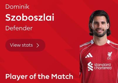 kaiyun-任意球破门,索博斯洛伊当选利物浦vs热刺全场最佳球员